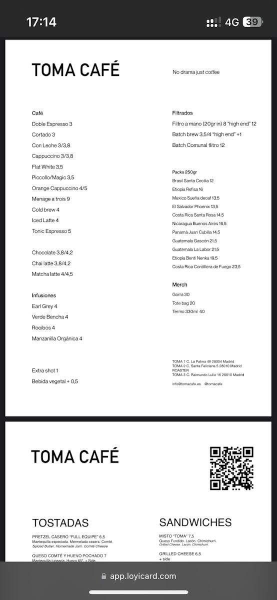Whether you're looking for a casual catch-up with friends or a moment of solitude with a good book, Toma Cafe 1’s atmosphere and friendly service ensure you’ll never feel out of place. For coffee enthusiasts and casual drinkers alike, this cafe is more than a stop; it's an experience waiting to be savored. In a city bursting with options, Toma Cafe 1 stands out as a true gem on the Madrid coffee scene—an absolute must-visit for anyone who appreciates quality, craft, and community.