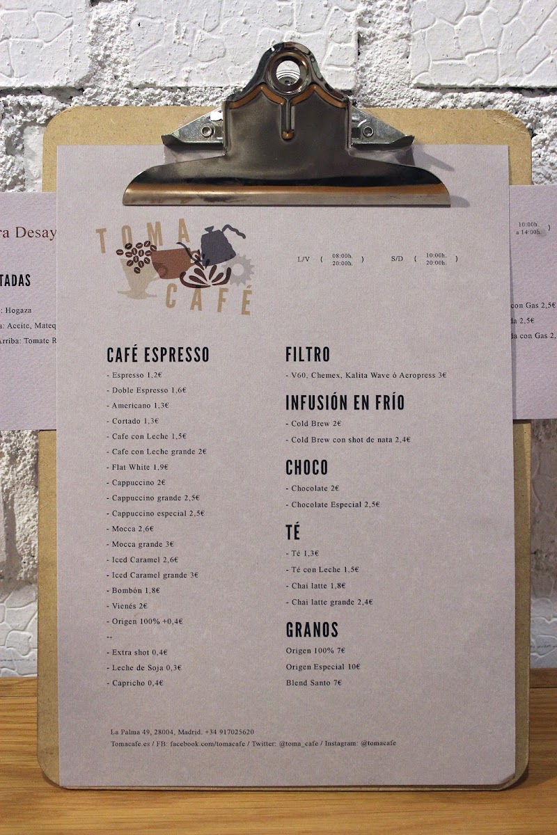 Welcome to Toma Cafe 1, a charming haven nestled in the heart of Madrid at C. de la Palma, 49, Centro. This cafe is more than just a pit stop for your daily caffeine fix; it’s a celebration of coffee culture and community. With a phone number of +34 917 04 93 44, you can easily reach out to this beloved spot that has captured the hearts of locals and visitors alike.